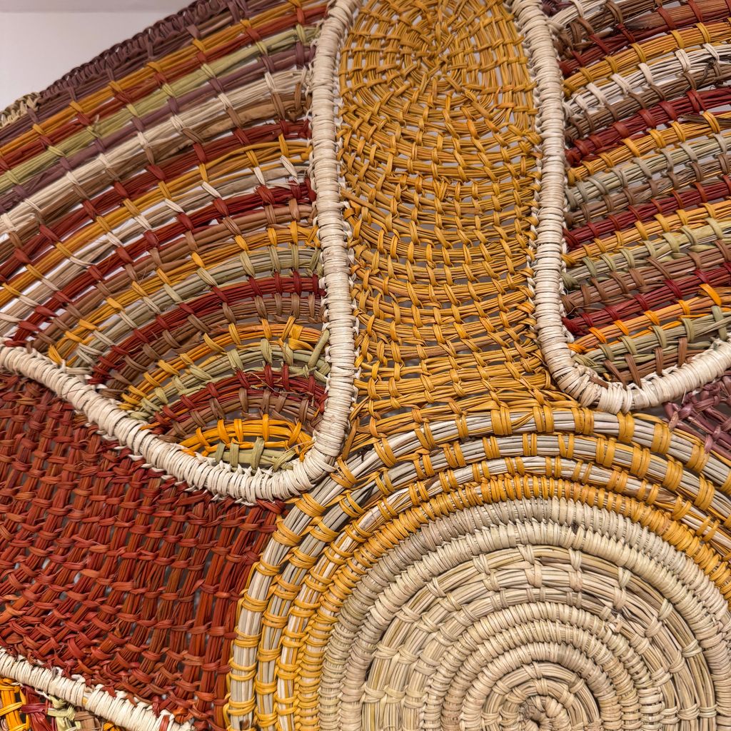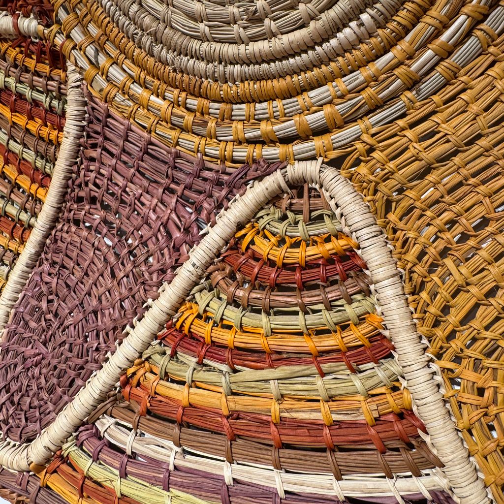 Circular and conical mats were a mainstay of Yolŋu family life in pre-contact times. As well as being used in ceremonial contexts they were useful for sitting, sleeping and child minding. Close weave conical mats kept mosquitoes at bay in the Wet. In ceremonial song the mat can correlate to the creation of life including the Sun as the ultimate source of all life. This form of coil weaving probably came with missionaries from the 1930s on as a style borrowed from the Narrindjeri from the Coorong.