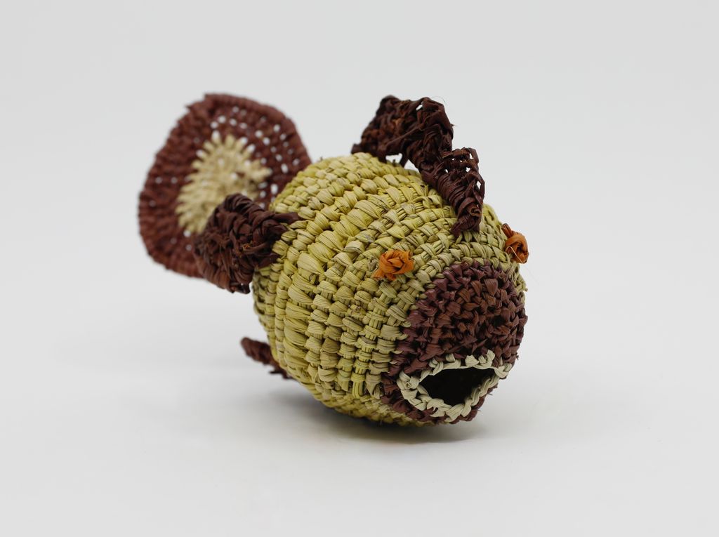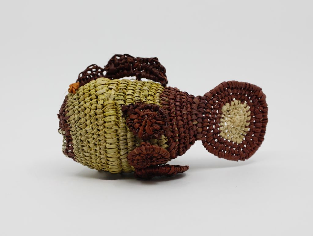 The dyes used are from the bulbs, roots or bark of various woodland plants. Each of these plants only grow in different specific locations. Once the material is collected, trimmed, dried and dyed the weaving begins. This is almost always done by women in groups. Men have been known to weave ceremonial or sacred objects but these are not for sale.