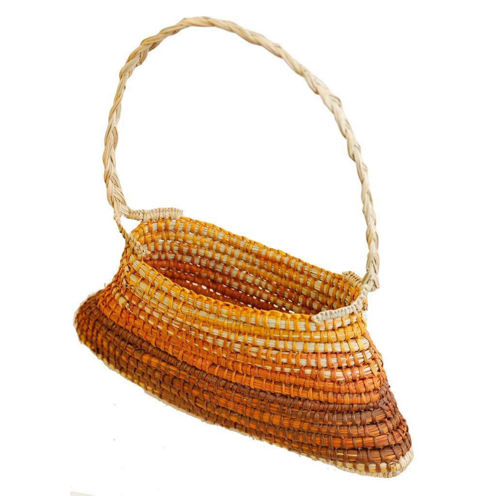 The dyes used are from the bulbs, roots or bark of various woodland plants. Each of these plants only grow in different specific locations. Once the material is collected, trimmed, dried and dyed the weaving begins. This is almost always done by women in groups. Men have been known to weave ceremonial or sacred objects but these are not for sale.