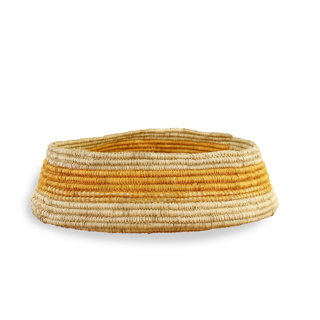 Circular and conical mats were a mainstay of Yolŋu family life in pre-contact times. As well as being used in ceremonial contexts they were useful for sitting, sleeping and child minding. Close weave conical mats kept mosquitoes at bay in the Wet. In ceremonial song the mat can correlate to the creation of life including the Sun as the ultimate source of all life. This form of coil weaving probably came with missionaries from the 1930s on as a style borrowed from the Ngarrindjeri from the Coorong. Yolŋu call these Bathi which means basket.