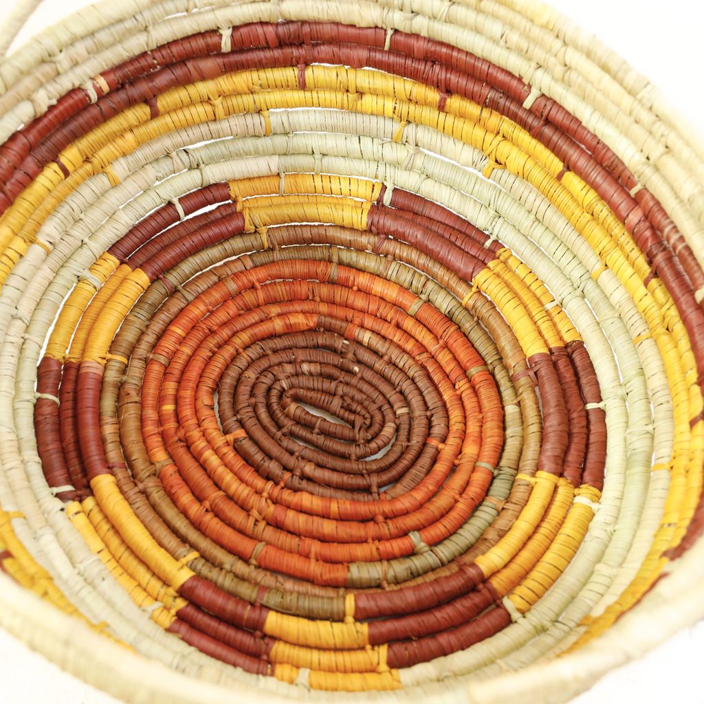 Circular and conical mats were a mainstay of  Yolŋu family life in pre-contact times. As well as being used in ceremonial contexts they were useful for sitting, sleeping and child minding. Close weave conical mats kept mosquitoes at bay in the Wet. In ceremonial song the mat can correlate to the creation of life including the Sun as the ultimate source of all life. This form of coil weaving probably came with missionaries from the 1930s on as a style borrowed from the Ngarrindjeri from the Coorong. Yolŋu call these Bathi which means basket.
