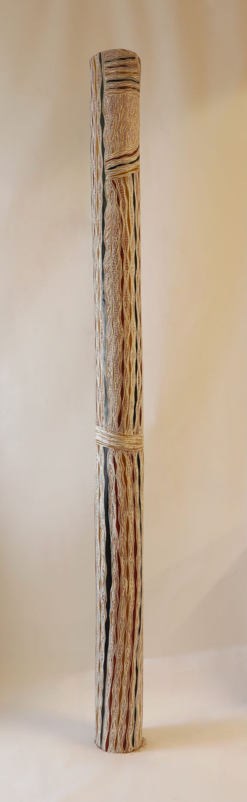 A further role for this cultural form is as a fine art object and an instructional tool for younger generations. Artworks of this nature have multiple layers of metaphor and meaning which give lessons about the connections between an individual and specific pieces of country (both land and sea), as well as the connections between various clans but also explaining the forces that act upon and within the environment and the mechanics of a spirit’s path through existence. The knowledge referred to by this imagery deepens in complexity and secrecy as a person progresses through a life long learning process.