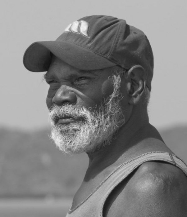 There is no figurative imagery on this work. In this regard it is reminiscent of his piece entered in the 1995 NATSIAA which was subsequently purchased by the Queensland Art Gallery which caused dissent at a leadership level. Following contact with the European and world art milieu in the 40s a protocol was adopted which seemed to ‘cover’ such raw manifestations of sacred identity with figurative imagery. It seems that greater licence is now allowed by those with authority over miny’tji. Perhaps that as this work is solely within Dhalwaŋu (and not the shared area of Baraltja as with the earlier piece) or with his own increased seniority he has escaped criticism. The beautiful rendition of the sea at Garraparra. Garraparra is a coastal headland and bay area within Blue Mud Bay. It marks the spot of a sacred burial area for the Dhalwaŋu clan and a site where dispute was formally settled by Makarrata ( a trial of ordeal by spear which settled serious grievance and sealed the peace forever). During the times after the ‘first mornings’ ancestral hunters left the shores of Garraparra in their canoe towards the horizon hunting for turtle. Sacred songs and dance narrate the heroic adventures of these two men as they passed sacred areas, rocks and saw ancestral totems on their way. Their hunting came to grief, with the canoe capsising and the hunters being drowned. The bodies washed back to the shores of Garraparra with the currents and the tides, as the Waŋupini followed with its rain and wind. Their canoe with paddle and totems queen fish Makani and long tom Minyga and turtle Gärun are all referred to in the songs and landscape. Makarrata, the ritual throwing of spears at a miscreant of Yolŋu law took place here. At Garraparra sacred trees held these barbed spears whilst not in use. Garraparra has been rendered by the wavy design for Yirritja saltwater in Blue Mud Bay called Muŋurru. The Muŋurru is deep water that has many states and connects with the sacred waters coming from the land estates by currents and tidal action. Other clans of Blue Mud Bay that share similar mythology of the Yiŋapuŋapu, ie the Madarrpa and Maŋgalili also paint the deeper saltwater – the Muŋurru as such. This sacred design shows the water of Djalma Bay chopped up by the blustery South Easterlies of the early Dry season.