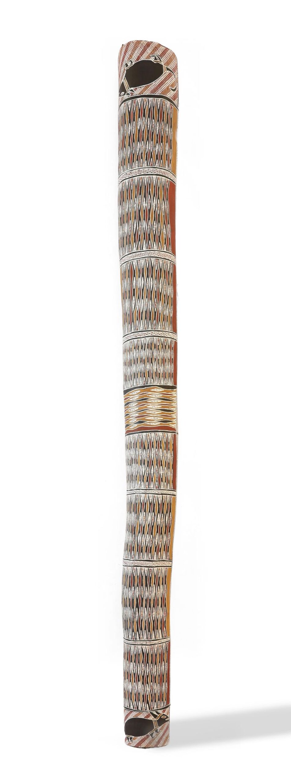 A further role for this cultural form is as a fine art object and an instructional tool for younger generations. Artworks of this nature have multiple layers of metaphor and meaning which give lessons about the connections between an individual and specific pieces of country (both land and sea), as well as the connections between various clans but also explaining the forces that act upon and within the environment and the mechanics of a spirit’s path through existence. The knowledge referred to by this imagery deepens in complexity and secrecy as a person progresses through a life long learning process.